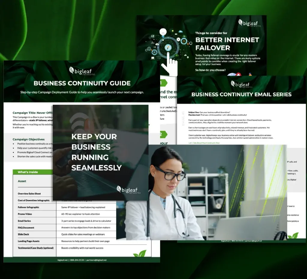 Bigleaf’s Business Continuity Campaign in a Box gives partners everything they need to bring this value story to market fast, including: