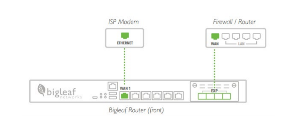 Each of the WAN ports should be configured for your ISP handoffs. If you are uncertain what ports are set up for which ISPs, please check the configuration page of your site on the Bigleaf Cloud Connect Dashboard or in the Bigleaf Order confirmation email. If WAN circuits are not configured before installation please follow these instructions to configure the WAN ports of the CPE, then connect an unused WAN port on the CPE to a DHCP handoff like the LAN of your firewall. If none are available please follow this guide to program a static IP for the ISP. Please do not hesitate to contact the Bigleaf Support Team if you are uncertain, we are available 24/7 and happy to walk you through it!